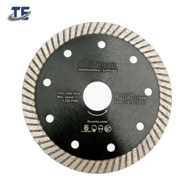 Hot pressed super thin turbo diamond saw blade. High efficiency cutting for ceramic tiles, marble or granite. 22.23 bore and 1.2mm thickness.